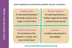 We are launching our What Lies Beneath campaign to increase awareness about the medical accessories people live with and care for day to day. It is allied to the Not All Disabilities Are Visible movement associated with multiple charities and individuals.
